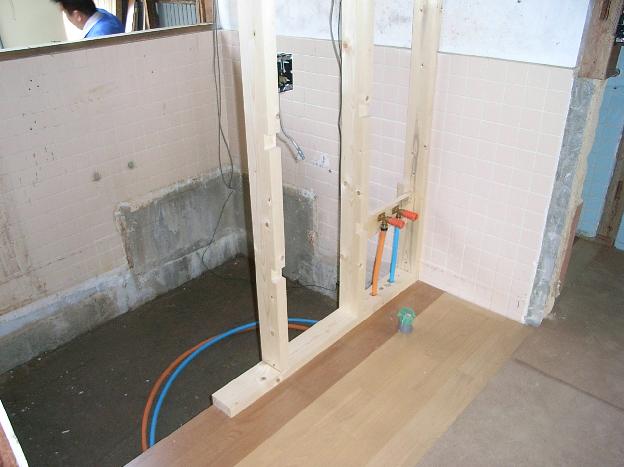 トイレの大きさは、またいで使用するので90㎝×90㎝ の大きさしかありませんでした。 水洗に切り替えて洋式トイレとして使用するには、トイレに 腰掛けなければいけません。座ると膝がドアに当たって、 使用できません。 ということでトイレを拡張することにしました。 右にある柱が元のトイレの大きさになります。 正面下は、シャワートイレ用のコンセントです。 千年ホームの不動産 http://www1.ocn.ne.jp/~sennen/index.html 明日がある社長ブログhttp://blog.goo.ne.jp/sennen_2006/ スタッフブログ http://sennenhome.blog26.fc2.com/ 再生中古住宅の不動産のことなら売りたい方も、買いたい方もまずは お問い合わせ下さい。コストを最大限に活かしたリフォームで中古住宅 を再生させます。(周南市、下松市、光市の不動産エリア) 足場を組んで外回りのリフォーム工事が始まりました。